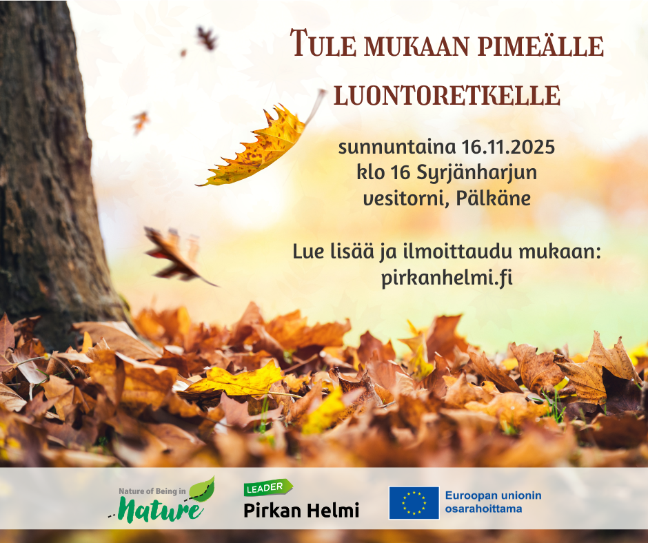 Pirkan Helmi järjestää Nature of Being in Nature -hankkeen puitteissa tapahtumia marraskuussa Pimeä luontoretki 16.11. Tervetuloa mukaan tutustumaan pimeään luontoon! Tapahtumassa päästään yhdessä…