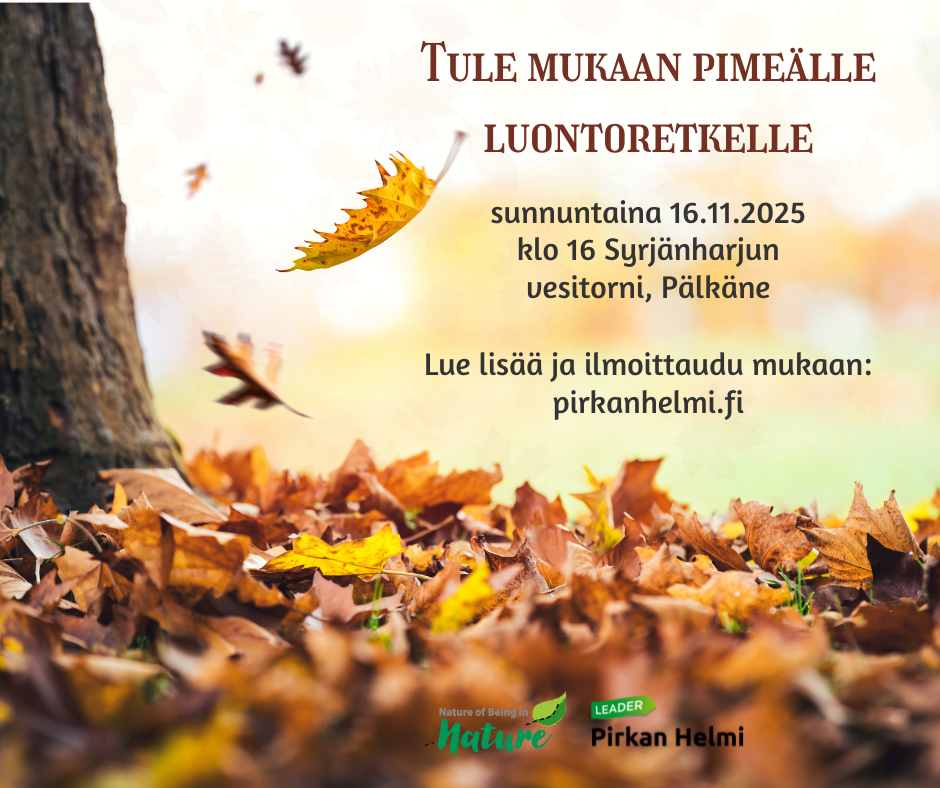 Pirkan Helmi järjestää Nature of Being in Nature -hankkeen puitteissa tapahtumia marraskuussa Pimeä luontoretki 16.11. Tervetuloa mukaan tutustumaan pimeään luontoon! Tapahtumassa päästään yhdessä…